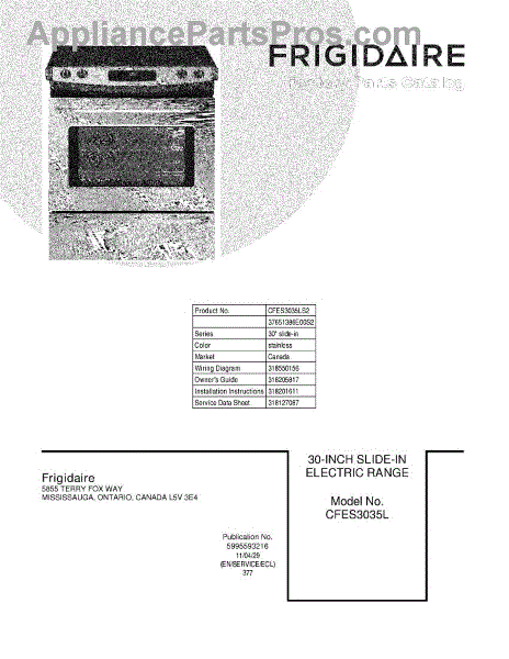 Parts for Frigidaire CFES3035LS2: 01 - Cover Parts