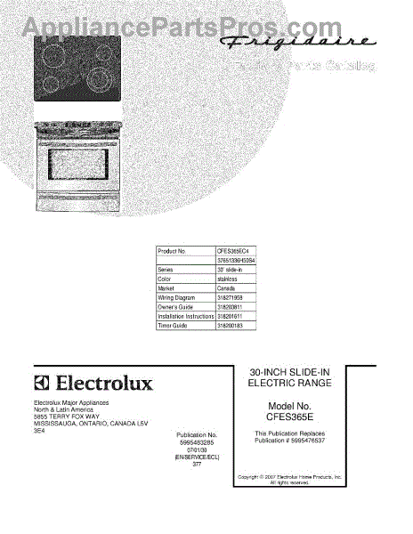 Parts for Frigidaire CFES365EC4: 01 - Cover Parts
