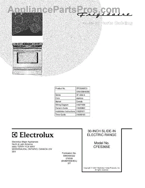 Parts for Frigidaire CFES365EC5: 01 - Cover Parts