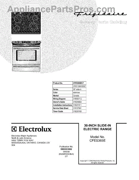Parts for Frigidaire CFES365EC7: 01 - Cover Parts