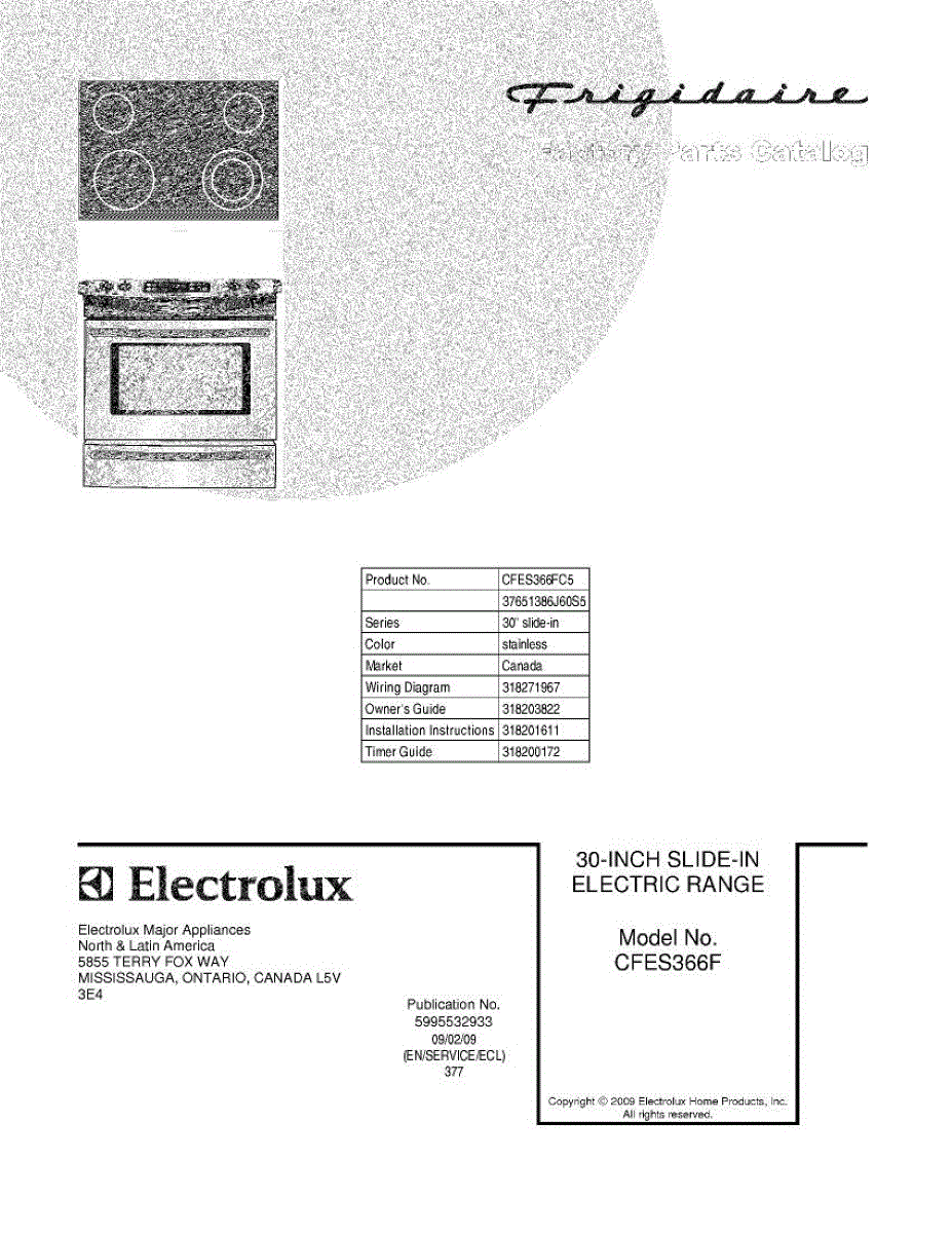 Parts for Frigidaire CFES366FC5: 01 - Cover Parts