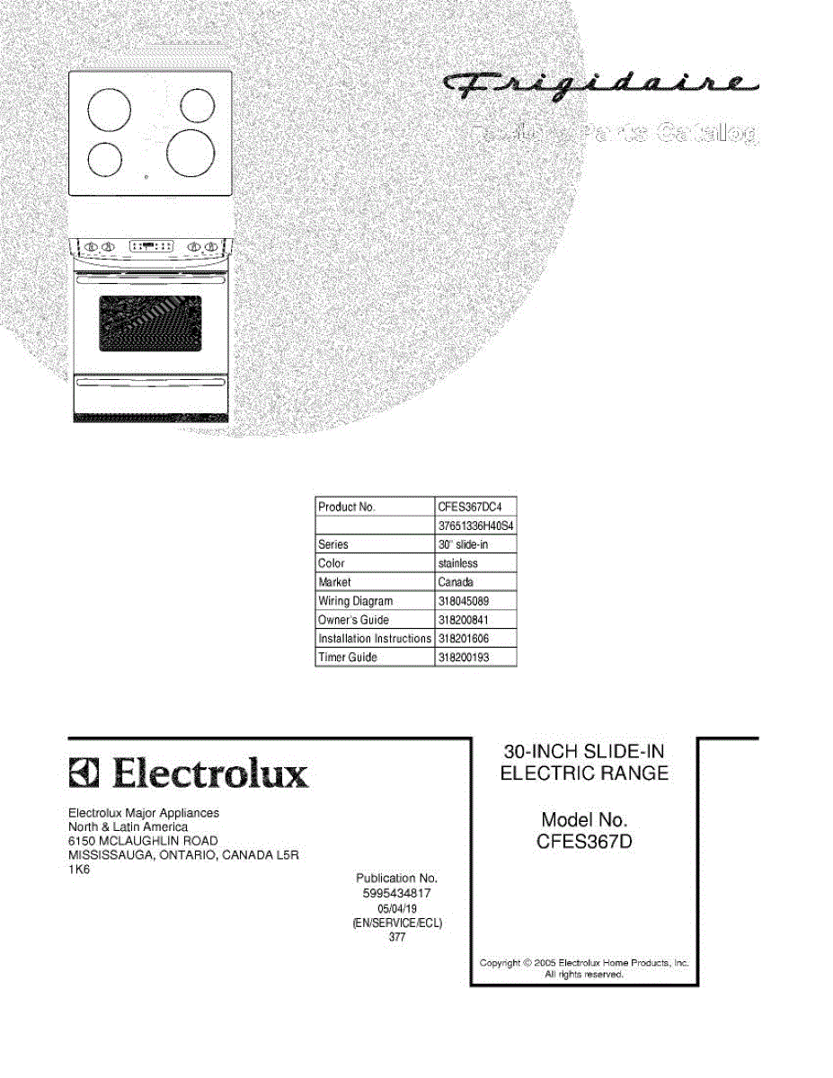 Parts for Frigidaire CFES367DC4: 01 - Cover Parts