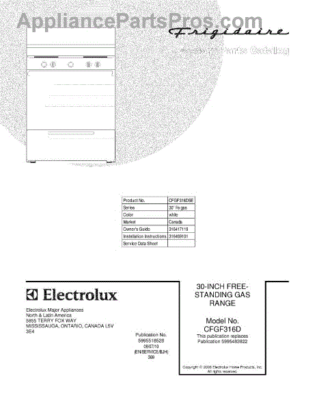 Parts for Frigidaire CFGF316DSE: 01 - Cover Parts
