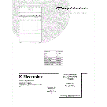 Parts for Frigidaire CFGF337ESC: 01 - Cover Parts