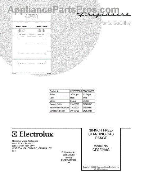 Parts for Frigidaire CFGF368GBB: 01 - Cover Parts