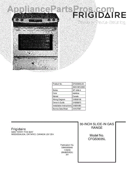 Parts for Frigidaire CFGS3035LS1: 01 - Cover Parts