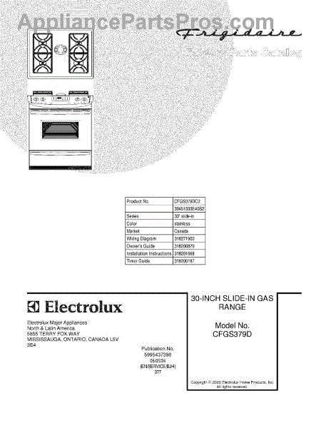 Parts for Frigidaire CFGS379DC2: 01 - Cover Parts