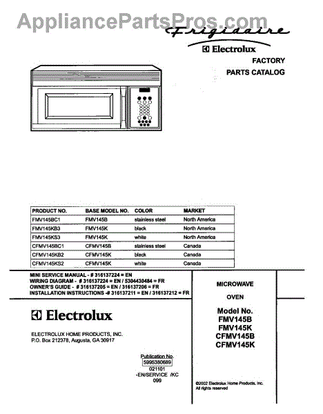 Parts for Frigidaire CFMV145KS2: 01 - Cover Parts