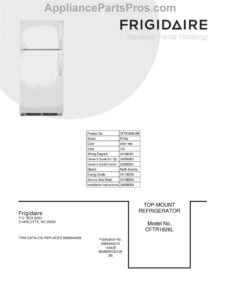 Parts for Frigidaire CFTR1826LMB: 01 - Cover Parts