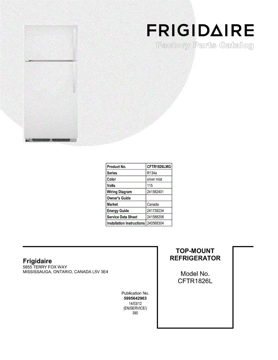 Parts for Frigidaire CFTR1826LMG: 01 - Cover Parts