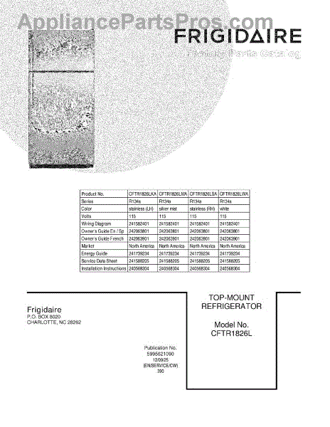 Parts for Frigidaire CFTR1826LSA: 01 - Cover Parts