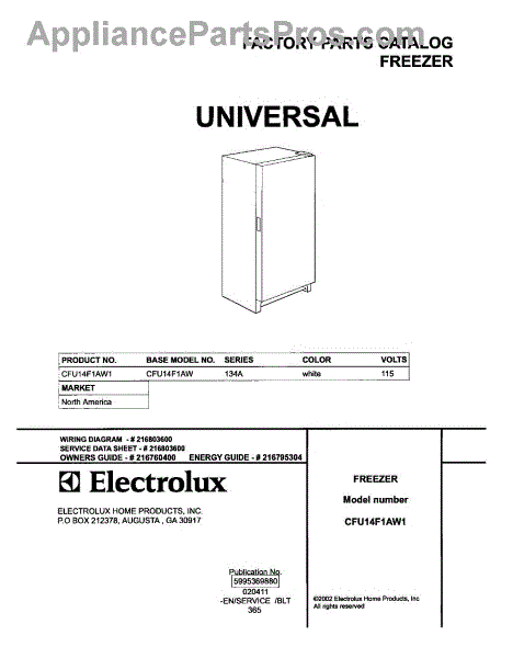 Parts for Frigidaire CFU14F1AW1: 01 - Cover Parts