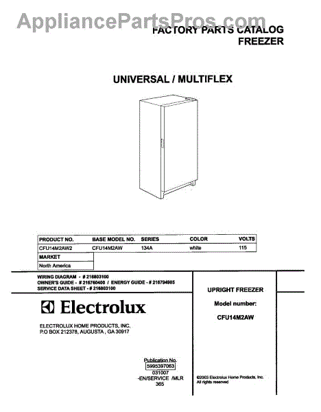 Parts for Frigidaire CFU14M2AW2: 01 - Cover Parts