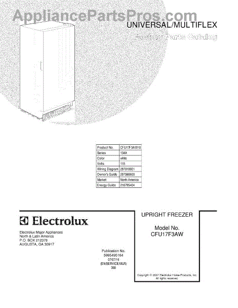 Parts for Frigidaire CFU17F3AW10: 01 - Cover Parts