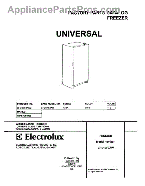 Parts for Frigidaire CFU17F3AW2: 01 - Cover Parts