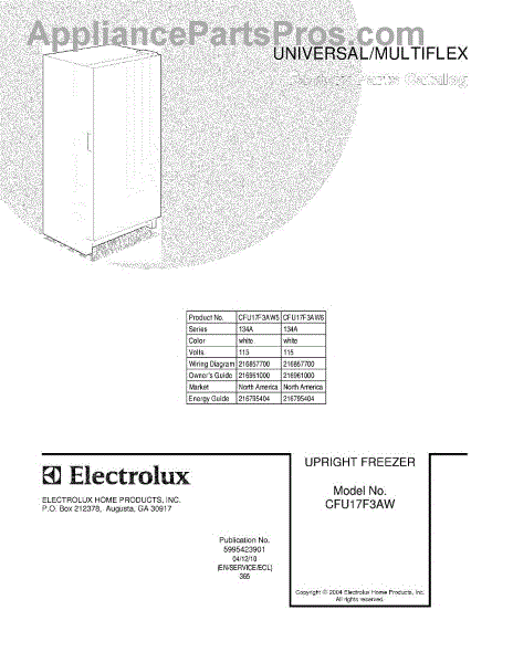 Parts for Frigidaire CFU17F3AW6: 01 - Cover Parts