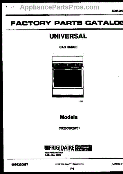 Parts for Frigidaire CG200SP2D1: 01 - Cover Parts