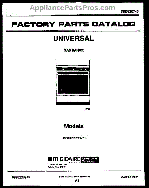Parts for Frigidaire CG240SP2D1: 01 - Cover Parts