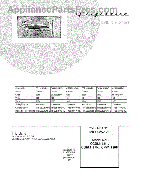 Parts for Frigidaire CGBM187KBC: 01 - Cover Parts