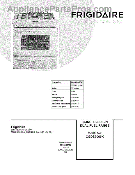 Parts for Frigidaire CGDS3065KB2: 01 - Cover Parts