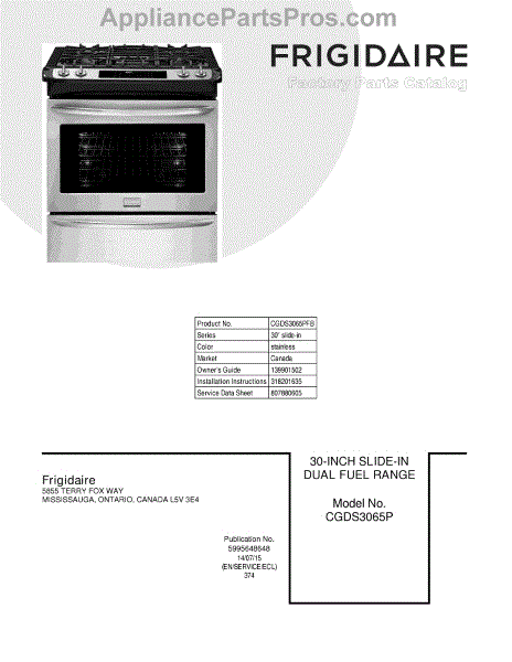 Parts for Frigidaire CGDS3065PFB: 01 - Cover Parts