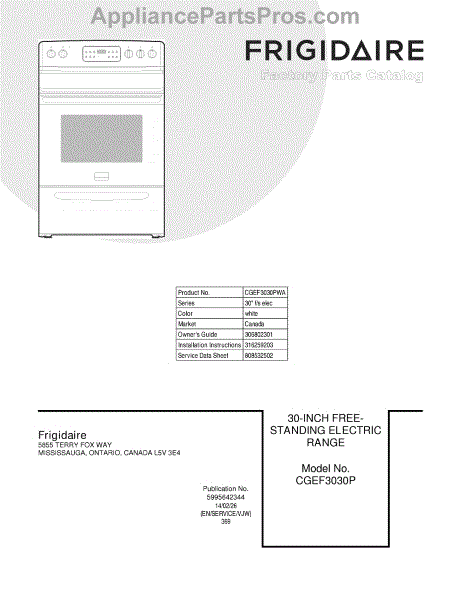 Parts for Frigidaire CGEF3030PWA: 01 - Cover Parts