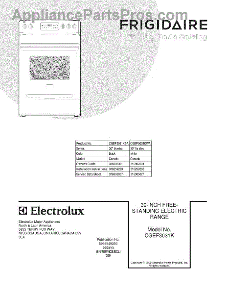 Parts for Frigidaire CGEF3031KBA: 01 - Cover Parts