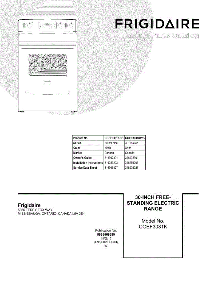 Parts for Frigidaire CGEF3031KWB: 01 - Cover Parts