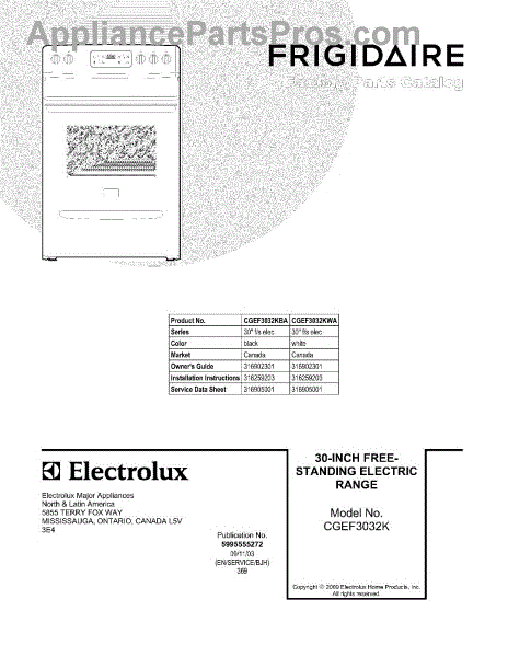 Parts for Frigidaire CGEF3032KBA: 01 - Cover Parts