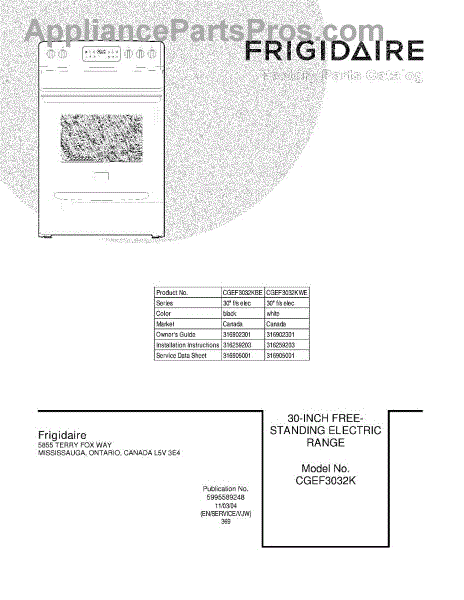 Parts for Frigidaire CGEF3032KBE: 01 - Cover Parts