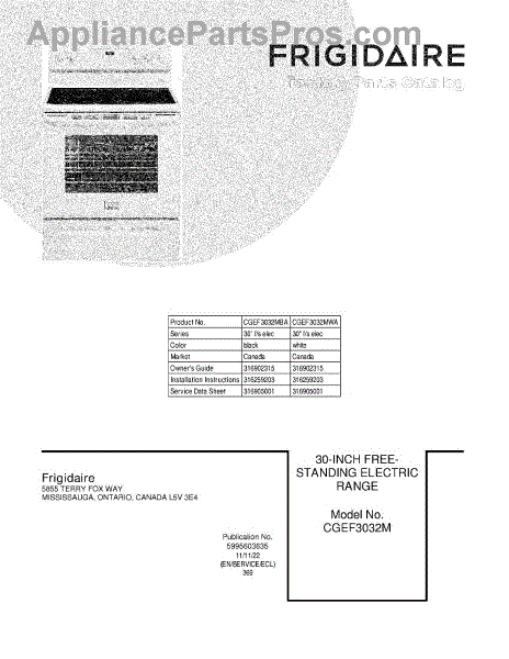 Parts for Frigidaire CGEF3032MWA: 01 - Cover Parts