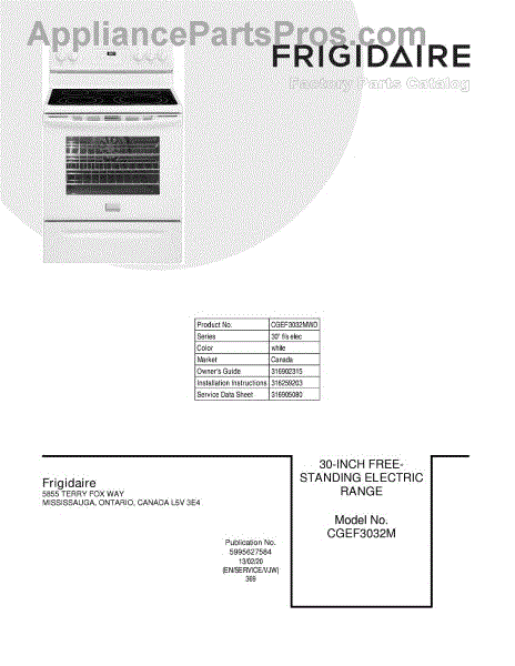 Parts for Frigidaire CGEF3032MWD: 01 - Cover Parts
