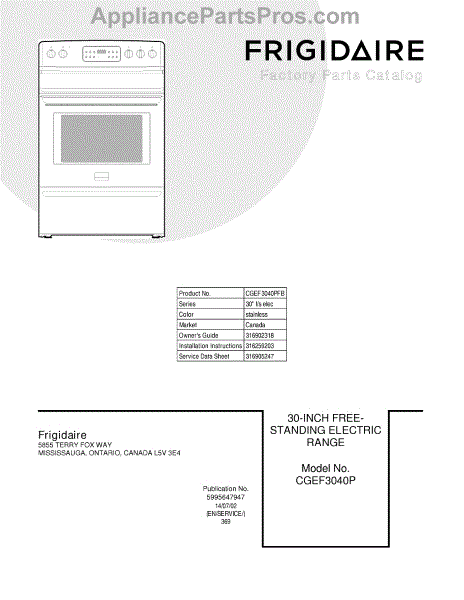 Parts for Frigidaire CGEF3040PFB: 01 - Cover Parts