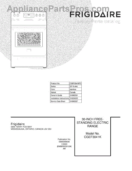 Parts for Frigidaire CGEF3041KFD: 01 - Cover Parts