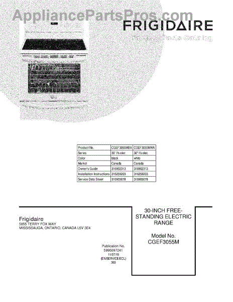 Parts for Frigidaire CGEF3055MBA: 01 - Cover Parts