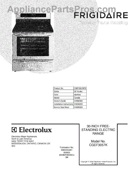 Parts for Frigidaire CGEF3057KFB: 01 - Cover Parts