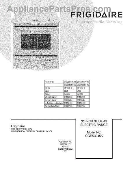 Parts for Frigidaire CGES3045KW2: 01 - Cover Parts