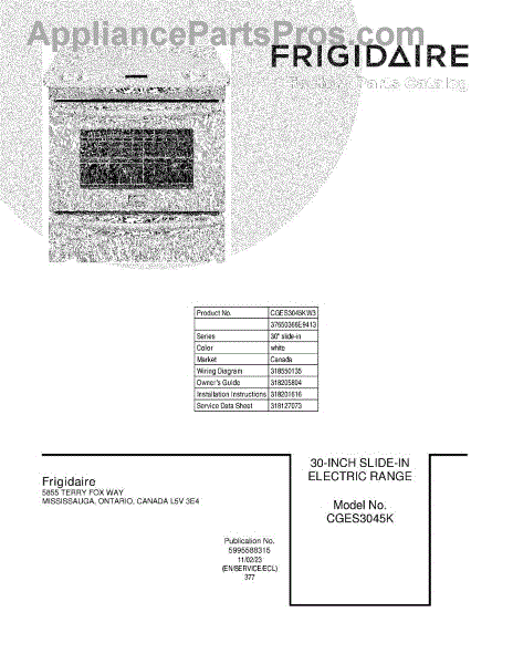Parts for Frigidaire CGES3045KW3: 01 - Cover Parts