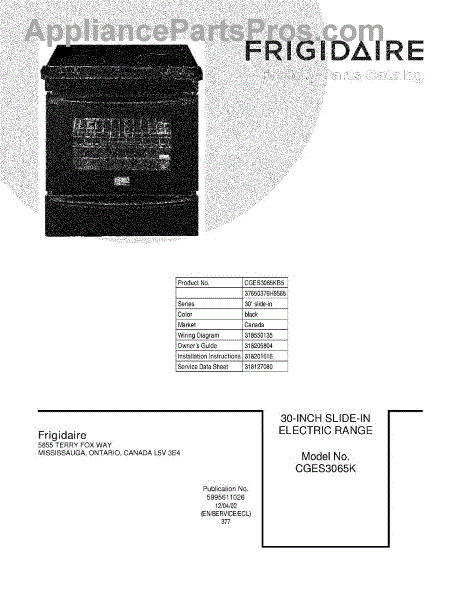 Parts for Frigidaire CGES3065KB5: 01 - Cover Parts