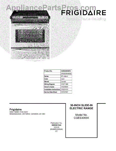 Parts for Frigidaire CGES3065KF2: 01 - Cover Parts