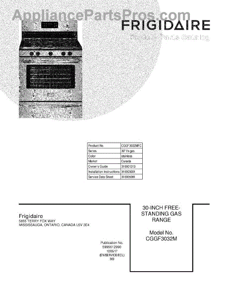 Parts for Frigidaire CGGF3032MFC: 01 - Cover Parts