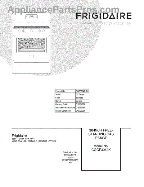 Parts for Frigidaire CGGF3042KFH: 01 - Cover Parts