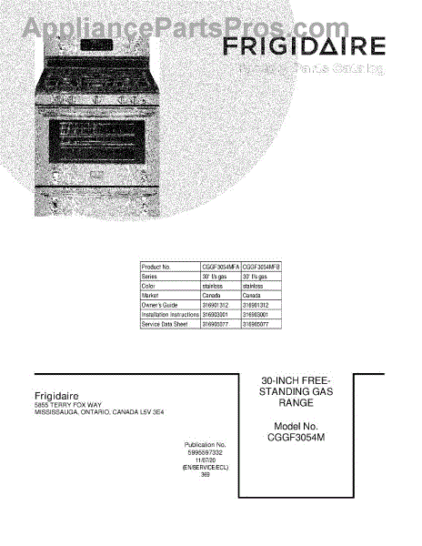 Parts for Frigidaire CGGF3054MFB: 01 - Cover Parts