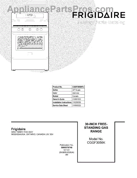 Parts for Frigidaire CGGF3056KFJ: 01 - Cover Parts