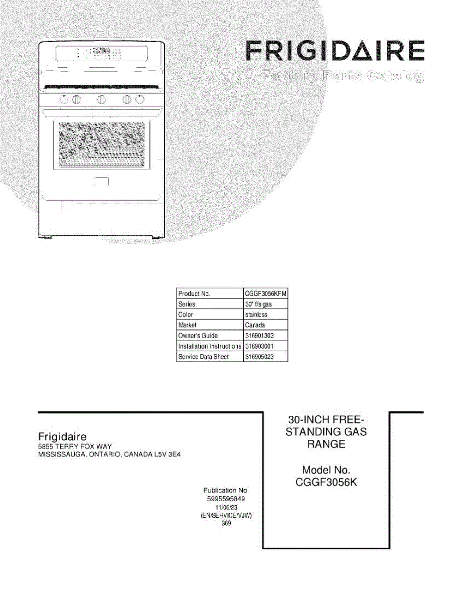 Parts for Frigidaire CGGF3056KFM: 01 - Cover Parts