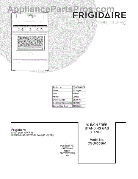 Parts for Frigidaire CGGF3056KFS: 01 - Cover Parts