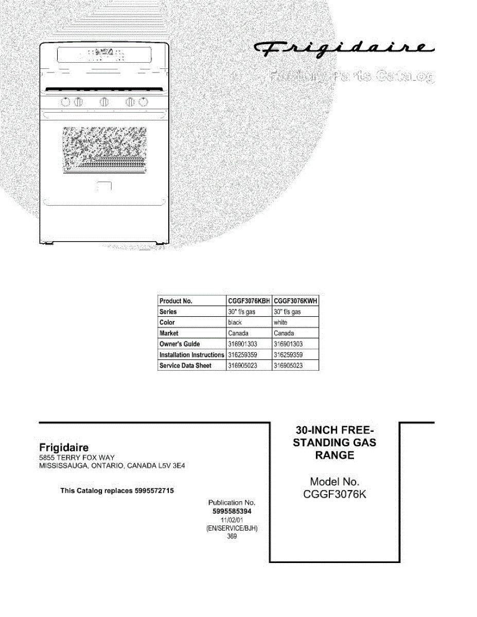 Parts for Frigidaire CGGF3076KBH: 01 - Cover Parts