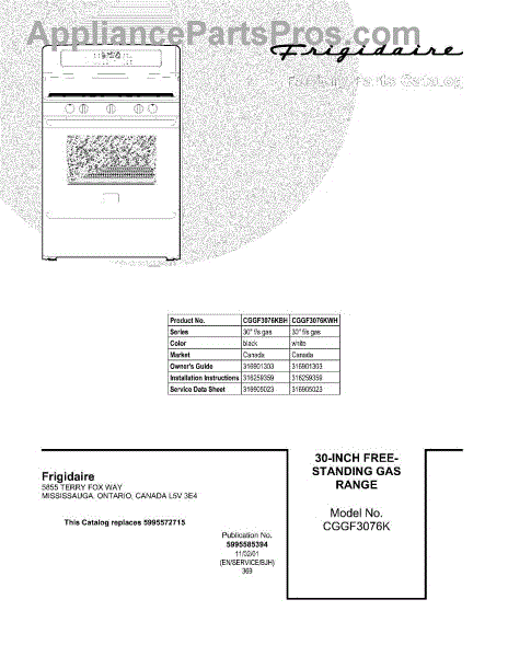 Parts for Frigidaire CGGF3076KWH: 01 - Cover Parts