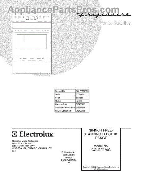Parts for Frigidaire CGLEF379GCC: 01 - Cover Parts