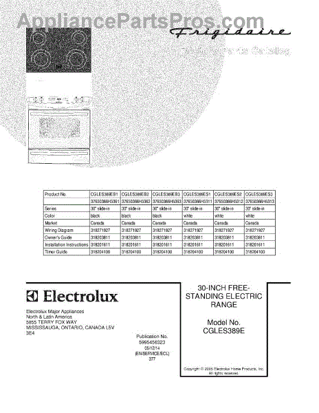 Parts for Frigidaire CGLES389ES2: 01 - Cover Parts